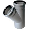 HT PLUS HTEA – odbočka DN 90→50, úhel 45°, šedá PP tvarovka pro odpadní systémy s hladkým přechodem.
