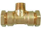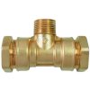 T-kus BUGATTI VALVOPAT BTA 25×3/4"×25 mm – mosazná svěrná tvarovka s vnějším závitem pro snadné odbočení vody nebo plynu.
