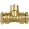 T-kus BUGATTI VALVOPAT BTI 25×3/4"×25 mm – mosazná svěrná tvarovka s vnitřním závitem pro rozvody vody a plynu bez pájení.