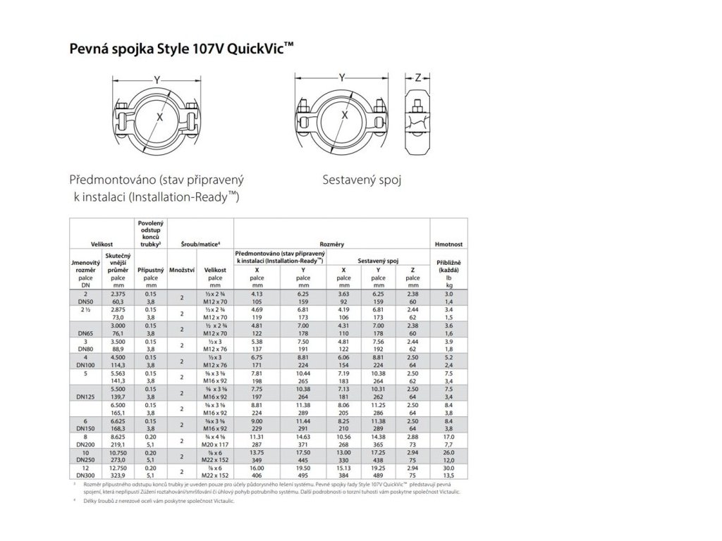 VICTAULIC QUICKVIC Style 107V pevná spojka 168,3 mm, těsnění EPDM, drážková, litina, pozinkováno