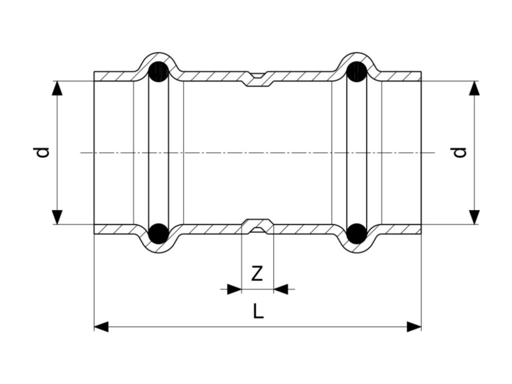 VIEGA PROFIPRESS G 2615 objímka 42 mm je profesionální lisovací tvarovka určená pro rozvody plynu v systému Viega Profipress G.