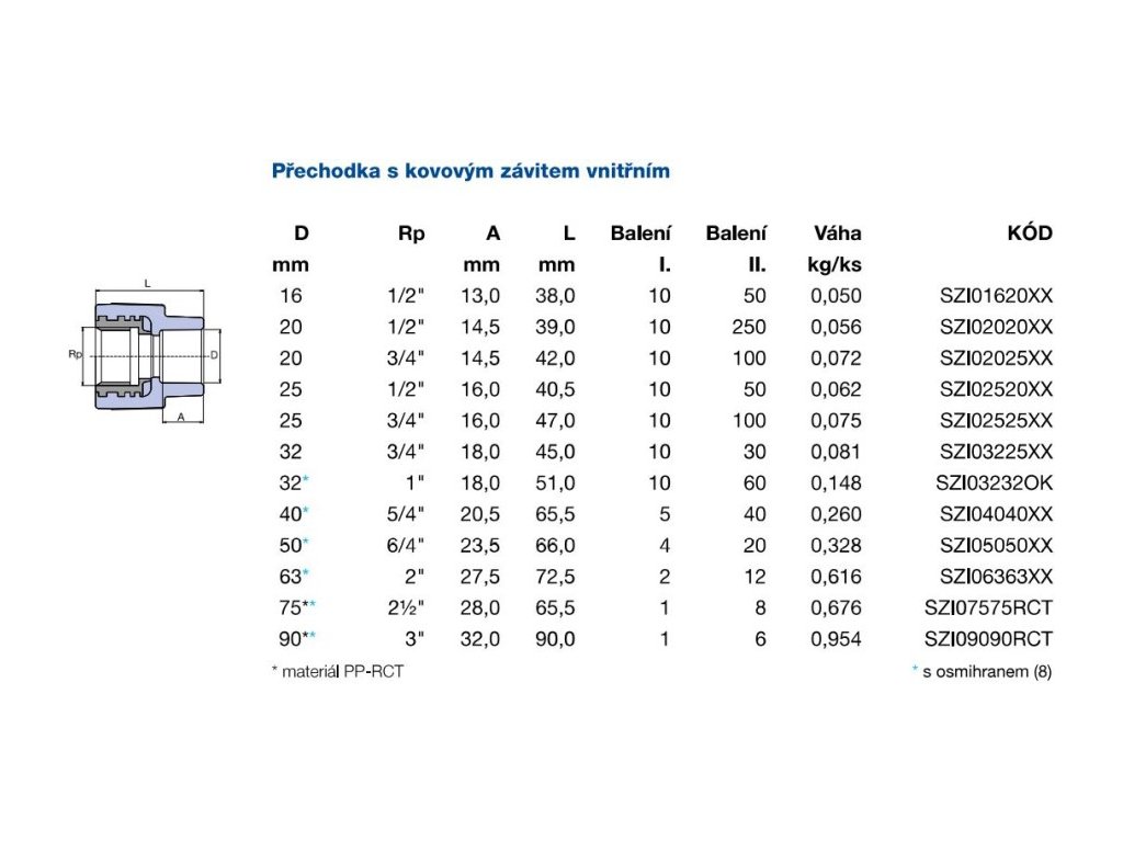 Na jedné straně se polyfúzně navařuje na trubku PPR o průměru 20 mm, druhá strana je vybavena mosazným vnitřním závitem 1/2", který je pevně zatavený do plastového těla. Tento závit je standardem v instalatérství a umožňuje rychlé a pevné napojení.