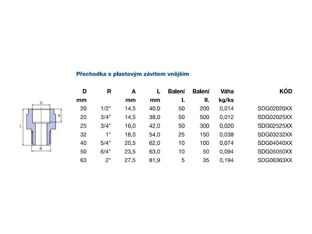 | Typ: | Přechodka se závitem |