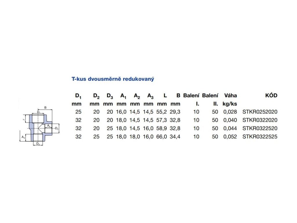 | Typ: | Dvousměrně redukovaný T-kus |