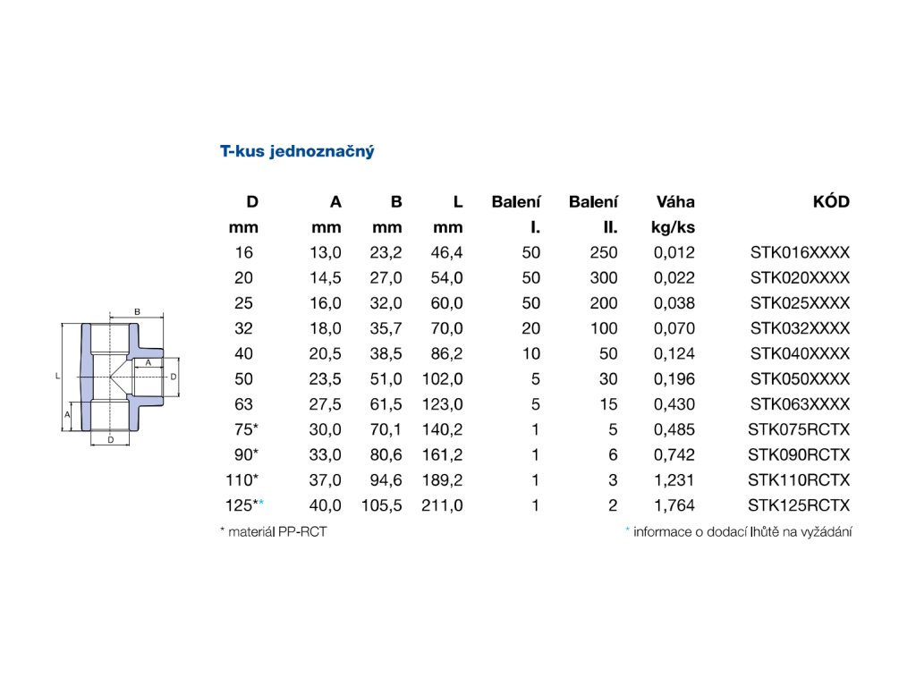 WAVIN EKOPLASTIK PPR T-kus 90mm, jednoznačný, svařovací, voda, PP-RCT